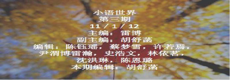 Student Corner 3nd Issue(小语世界第三期) 学生园地 Nov 022012 Download (PDF, 540KB) SharePrint Leave a Reply Cancel replyYou must be logged in to post a comment.